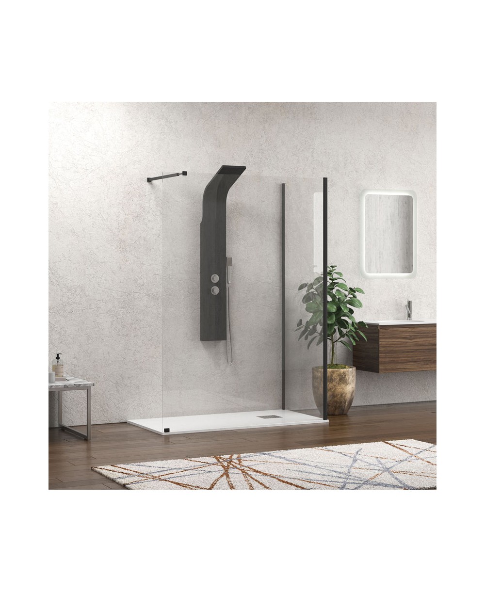 Σταθερό διαχωριστικό ντουζιέρας με διάφανο κρύσταλλο WALKIN 4 Black KARAG 100x90x200cm