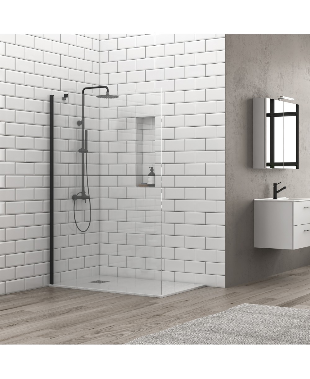 Σταθερό διαχωριστικό ντουζιέρας με διάφανο κρύσταλλο S 28F ALTO Black KARAG 65x200cm